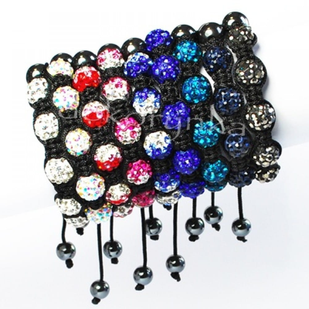 Bransoletki Shamballa mają regulowaną szerokość poprzez dowolne zaciąganie sznureczków. Można regulować od 17cm obwodu do nawet 25cm. Średnica koralików 10mm. Piękne koraliki discoball wysadzane cyrkoniami szklanymi.