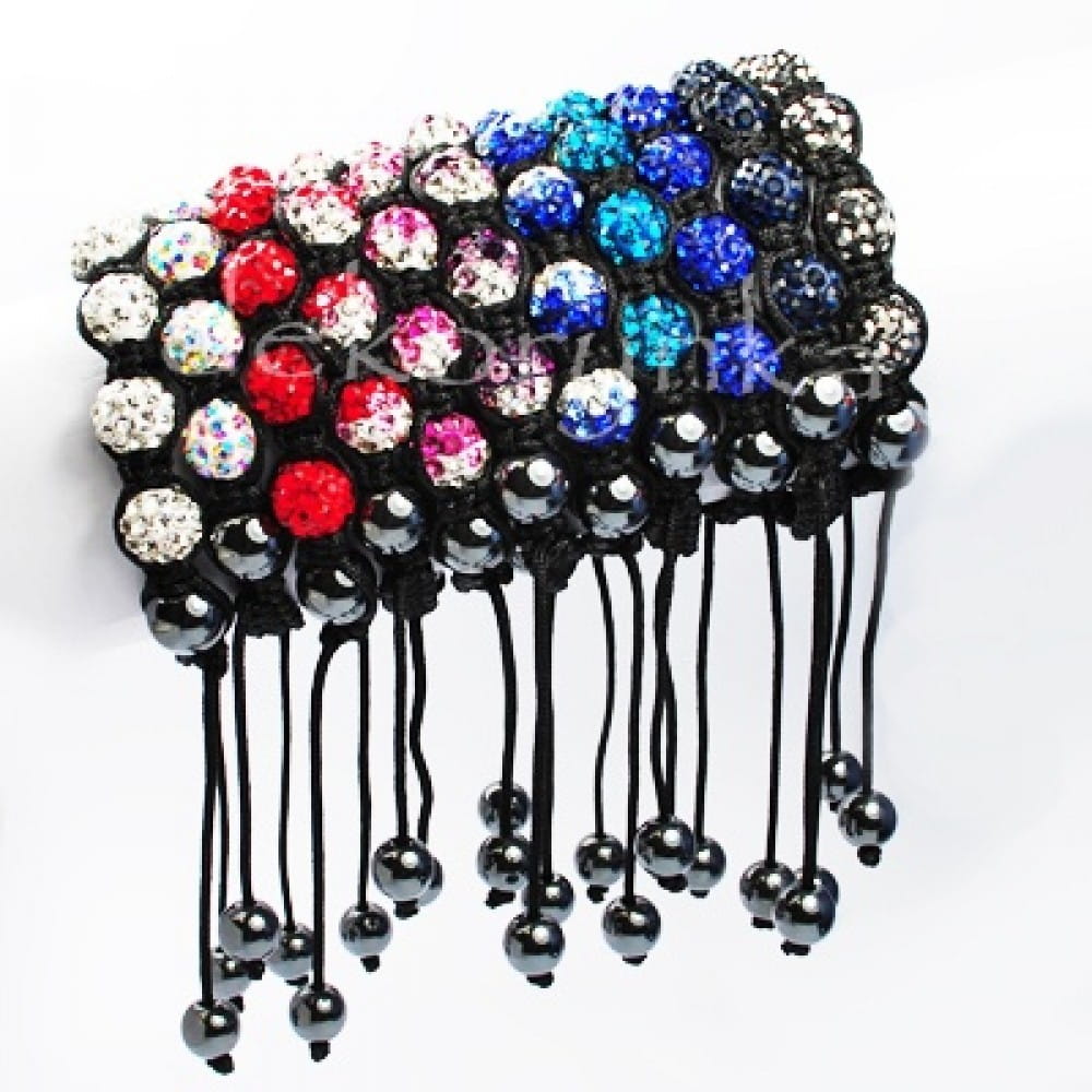 Bransoletki Shamballa mają regulowaną szerokość poprzez dowolne zaciąganie sznureczków. Można regulować od 17cm obwodu do nawet 25cm. Średnica koralików 10mm. Piękne koraliki discoball wysadzane cyrkoniami szklanymi.