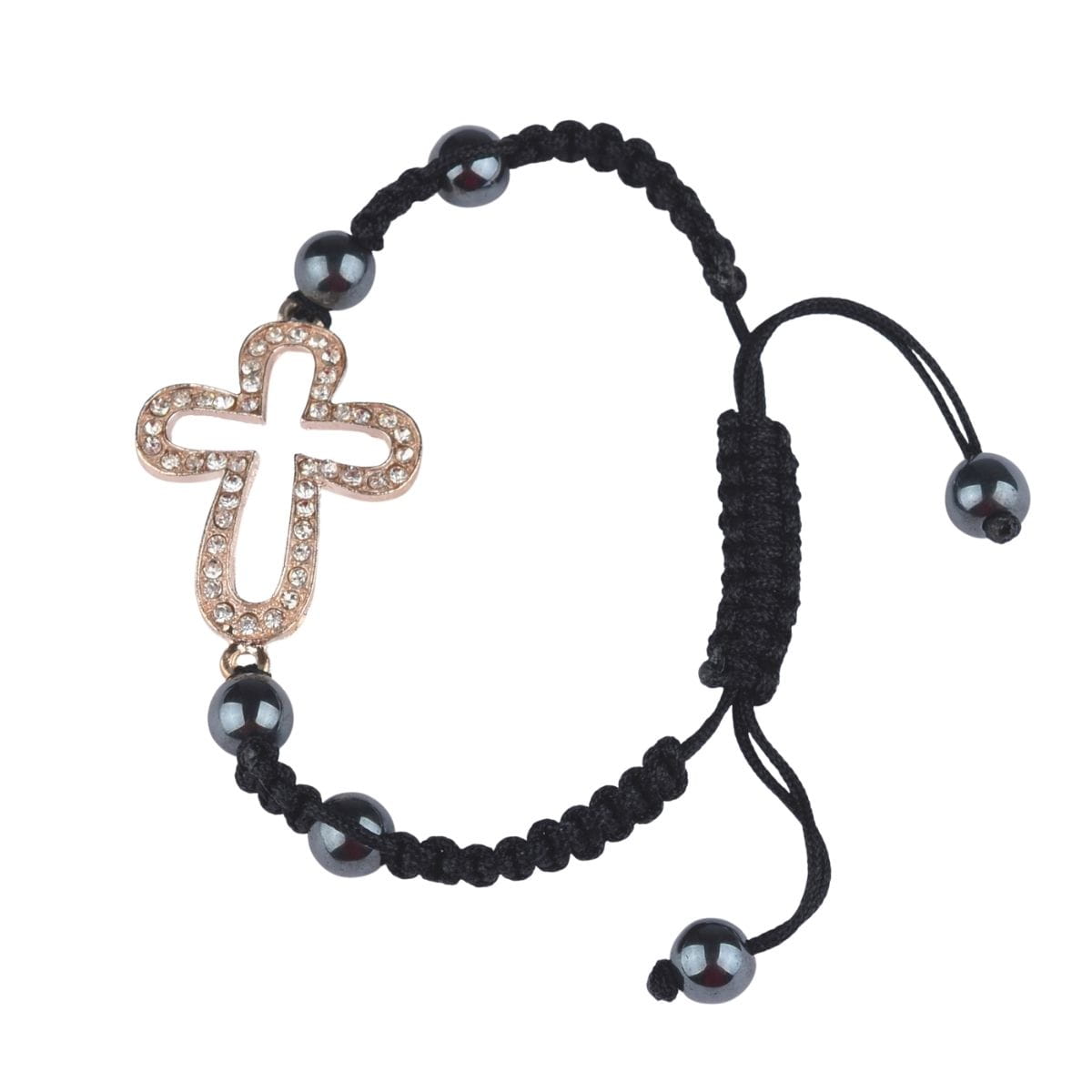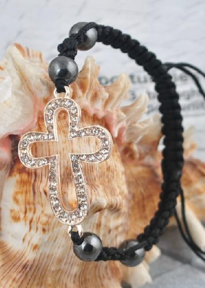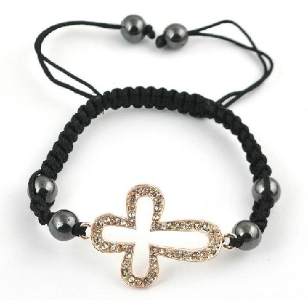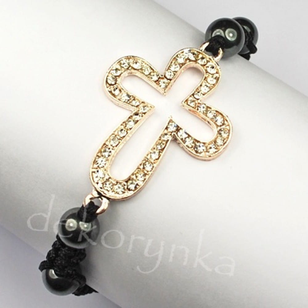 cro02 Bransoletka Shamballa KRZYŻYK Krzyż PUNK Gothic CYRKONIE