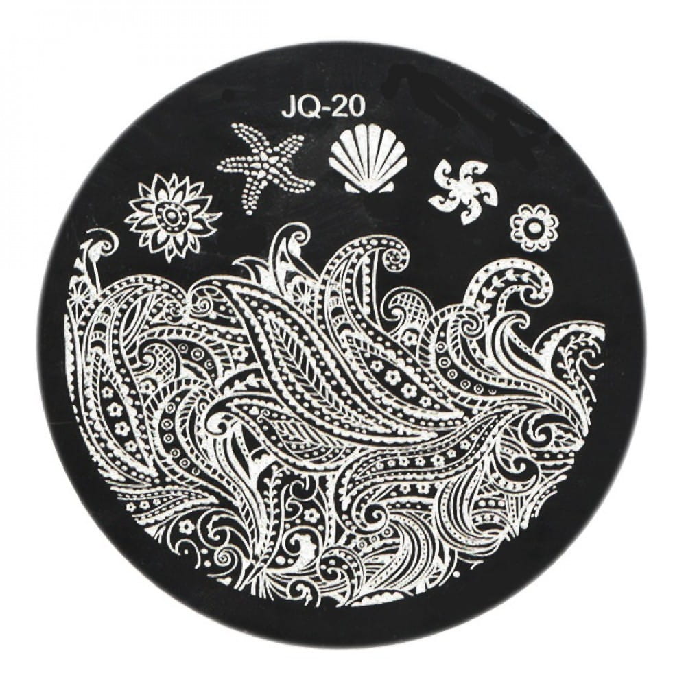 Metalowa płytka ze wzorkami do zdobienia paznokci metodą stempelkową. Wykonana ze stali chirurgicznej - grawerowana laserowo.