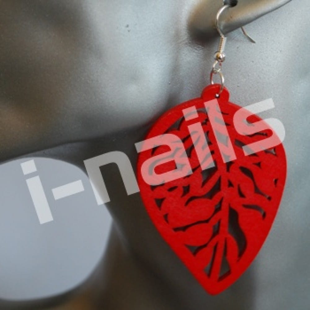 Kolczyki DREWNIANE - kol32 listek - czerwony