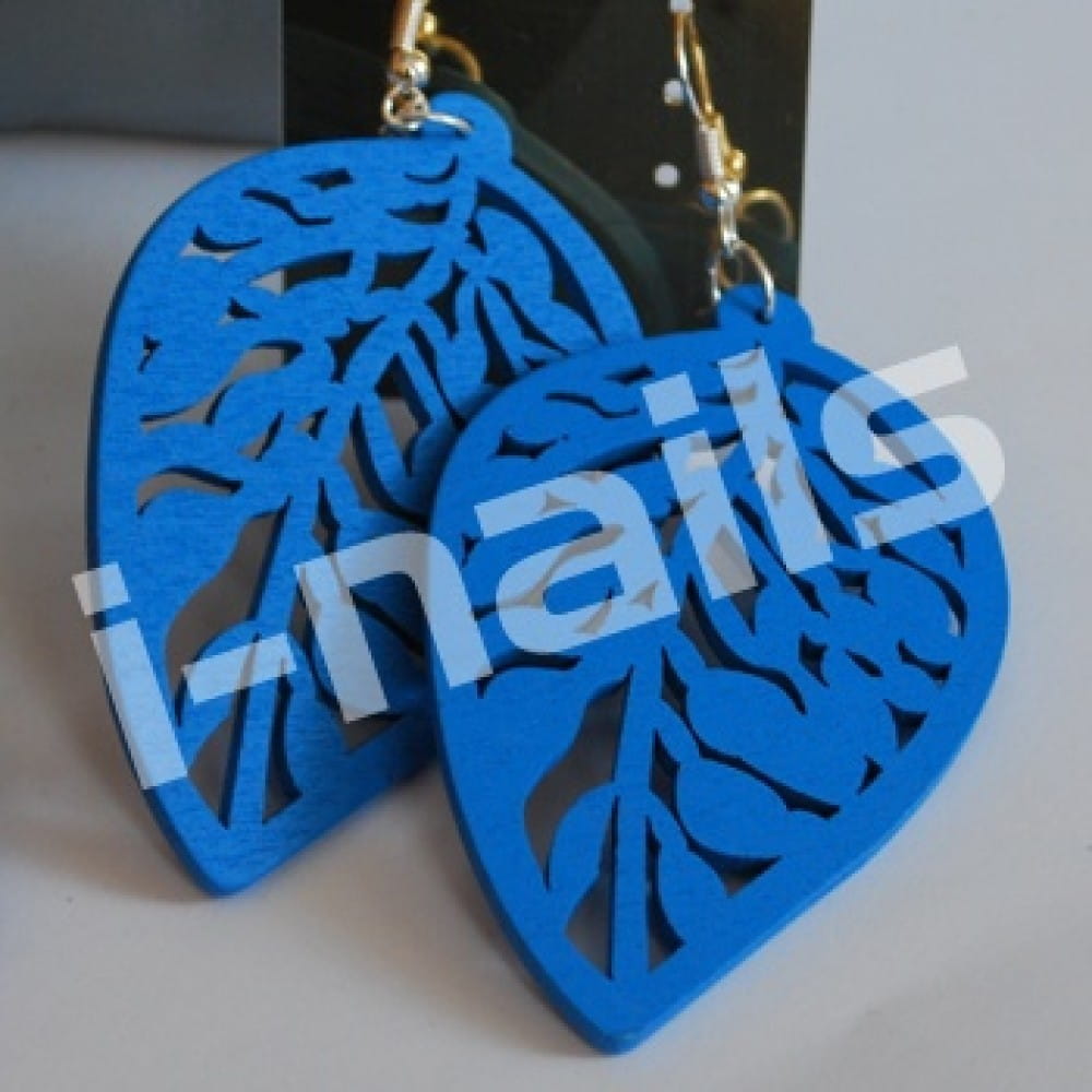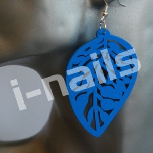 Kolczyki DREWNIANE - kol32 listek - niebieski