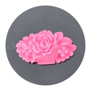 Śliczny kaboszon w kształcie kosza z kwiatami. Wykonany z trwałego akrylu. Idealny do techniki scrapbooking'u, może również zostać zastosowany w florystyce. Posiada płaski spód. Wymiary: 35 x 20 x 7 mm. 1 szuka.