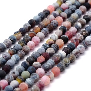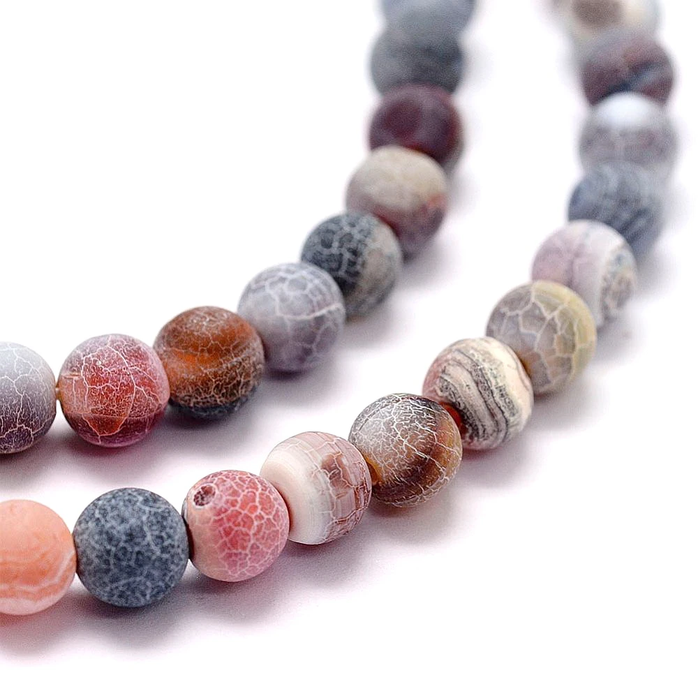 Piękne koraliki wykonane z naturalnego minerału - agatu barwionego, poddanego obróbce nadającej mu matową (szronioną) powierzchnię. Koraliki mogą różnić się od siebie odcieniami i wzorami ze względu na naturalne pochodzenie materiału, z którego są wykonane.