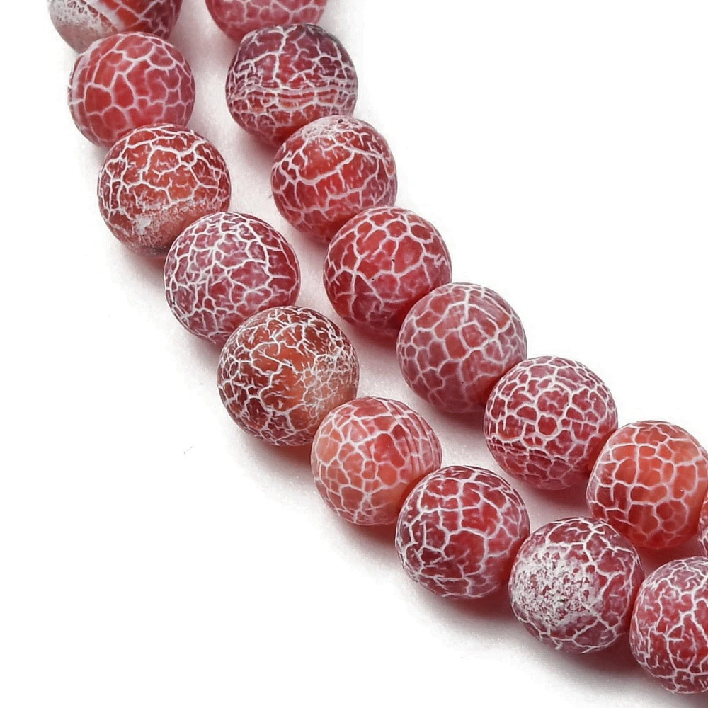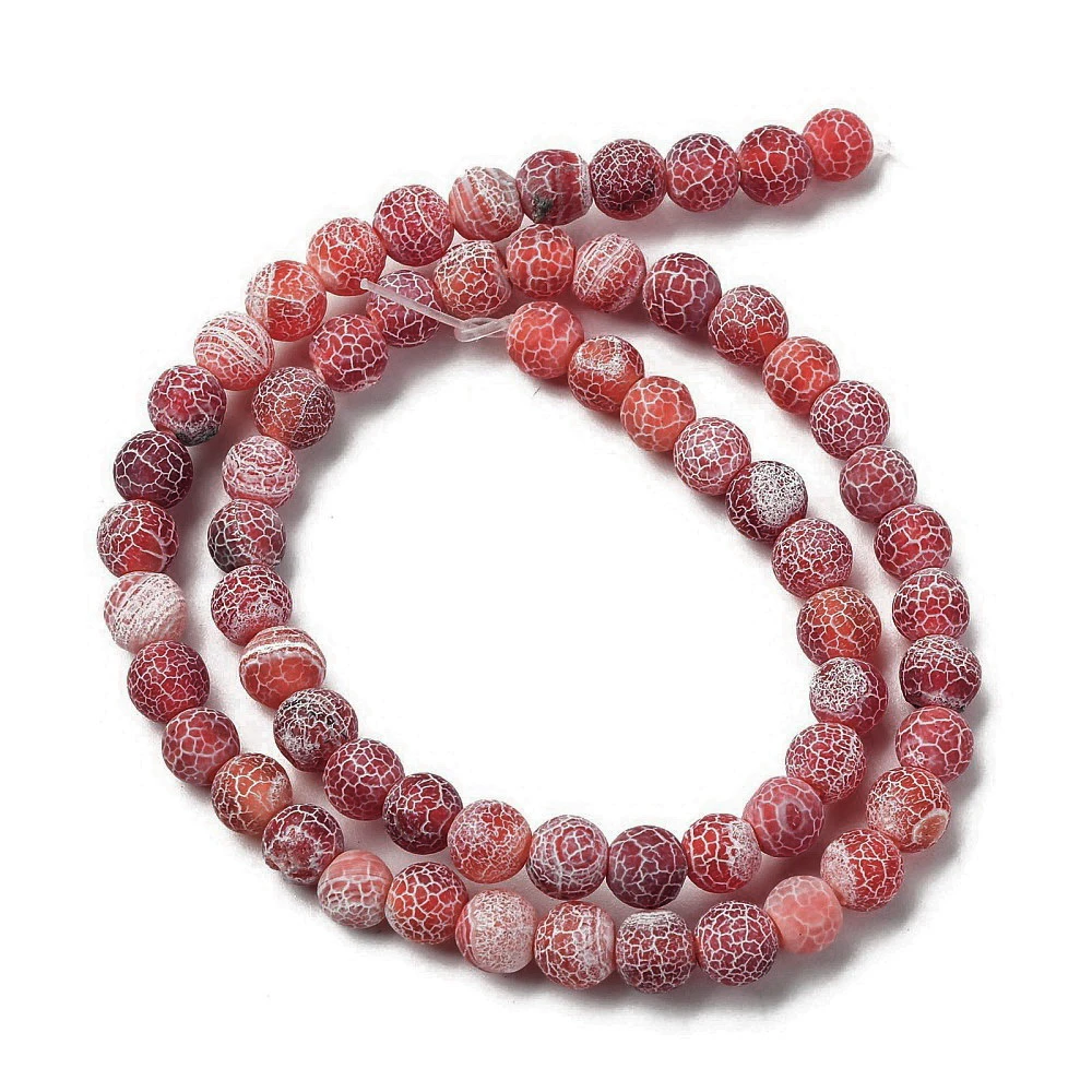 Piękne koraliki wykonane z naturalnego minerału - agatu barwionego, poddanego obróbce nadającej mu matową (szronioną) powierzchnię. Koraliki mogą różnić się od siebie odcieniami i wzorami ze względu na naturalne pochodzenie materiału, z którego są wykonane.