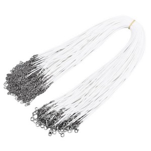 BNS21 Baza naszyjnika 43-49cm sznurek woskowany 1,5mm z karabinkiem łańcuszkiem 5szt - biała