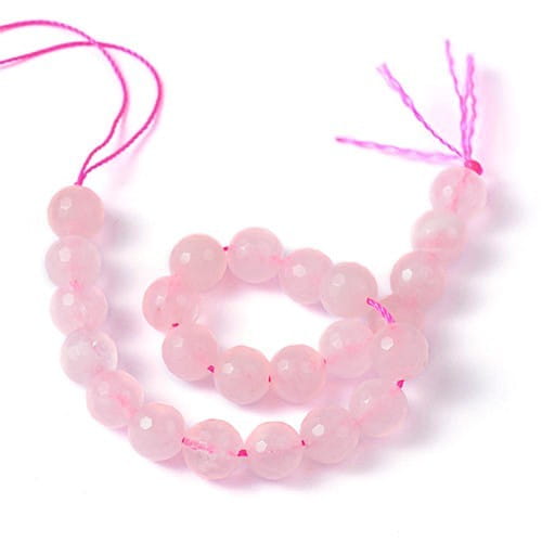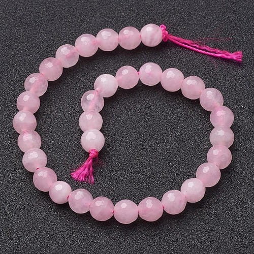 Koraliki fasetowane wykonane z naturalnego kamienia - kwarcu. Każdy koralik jest niepowtarzalny, posiada przeróżne wzory i odcienie. Koraliki mogą się również nieznacznie różnić od siebie rozmiarem.