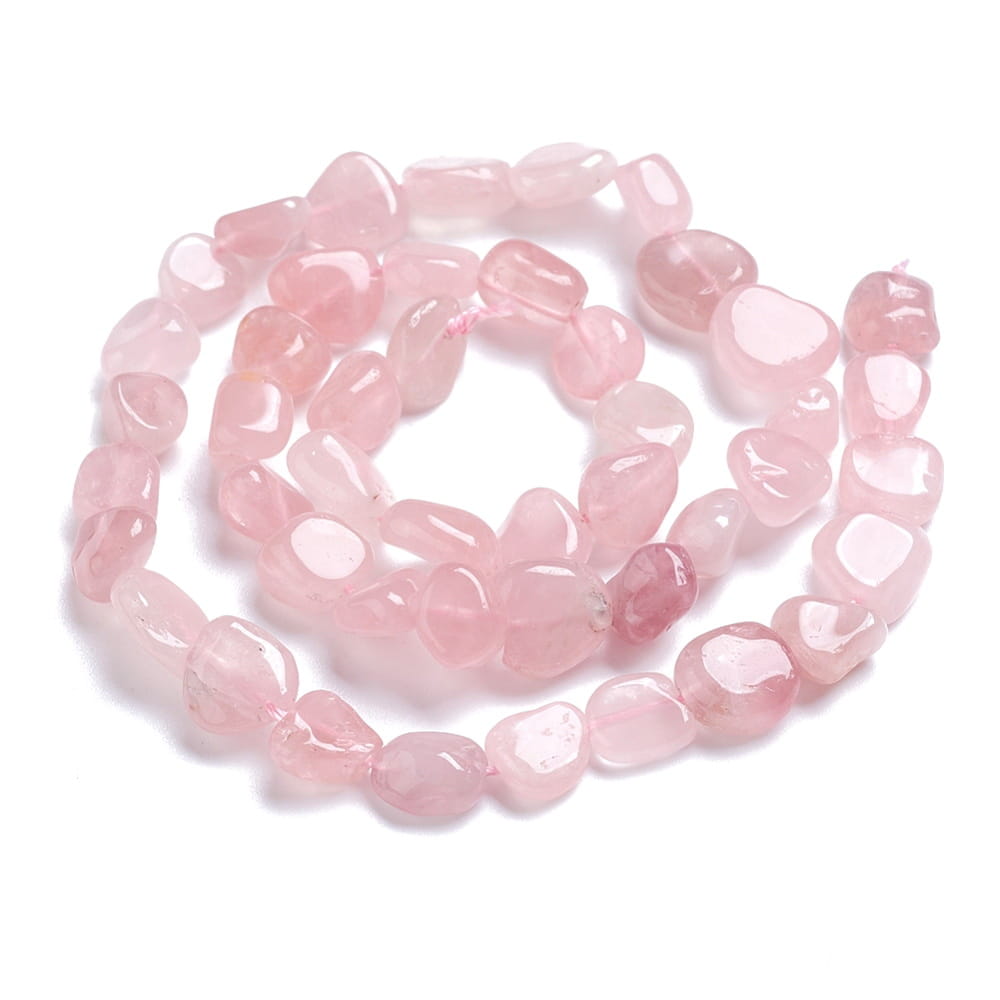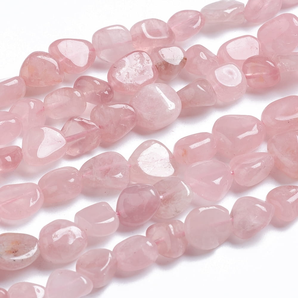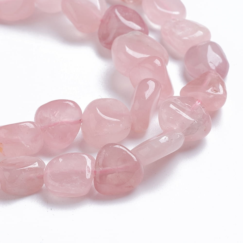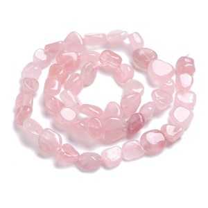 Koraliki wykonane z naturalnego kamienia- Kwarcu. Jest to pospolity kamień zbudowany z dwutlenku krzemu, który występuje w wielu odmianach o różnych kolorach. Kwarc różowy to makrokrystaliczna odmiana kwarcu mineralnego (SiO 2), jego charakterystyczne zabarwienie jest wynikiem zawartości pierwiastków tytanu i manganu. Występuje w wielu miejscach w naturze, znane są jego różnorodne złoża na całym świecie. Największe zlokalizowane są w Brazylii, RPA, Indiach i na Madagaskarze. W Polsce obecność kwarcu różowego została stwierdzona w Górach Sowich i Górach Izerskich.