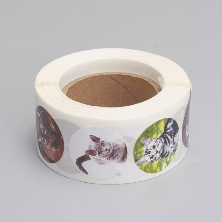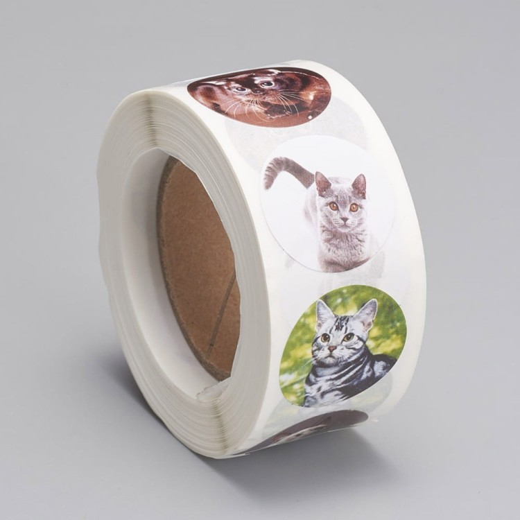 NAK40 Naklejki papierowe etykiety KOTKI rolka 500szt
