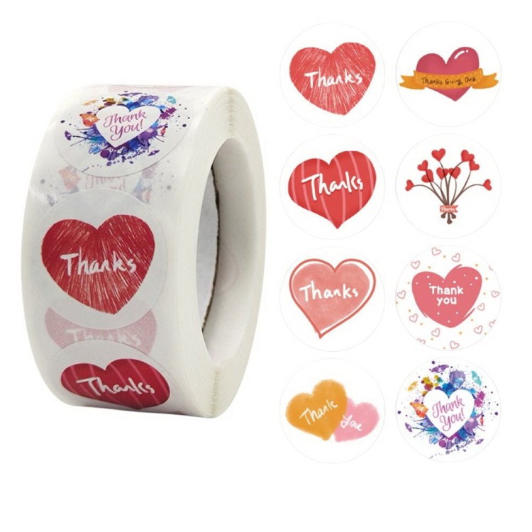 NAK89 Naklejki papierowe etykiety THANK YOU rolka 500szt