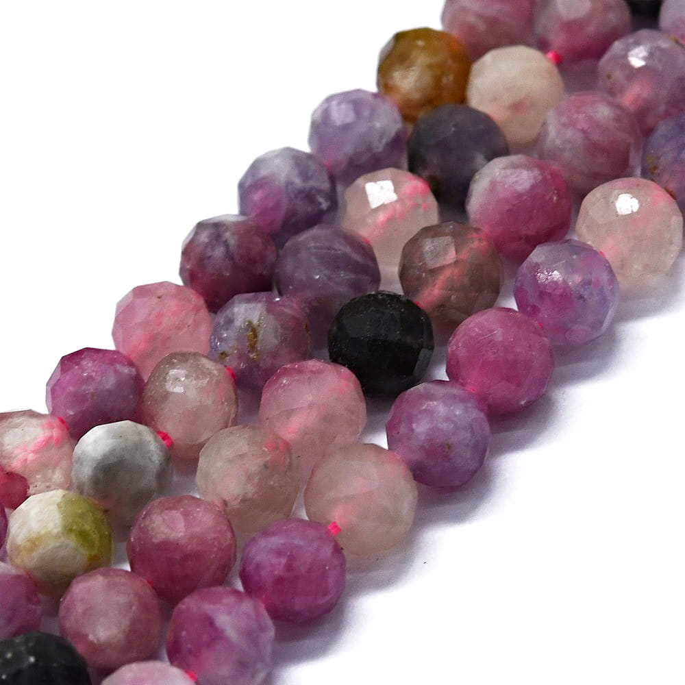 NT30 Turmalin kamień naturalny fasetowany koraliki kule 6mm sznur 61szt. wielokolorowy
