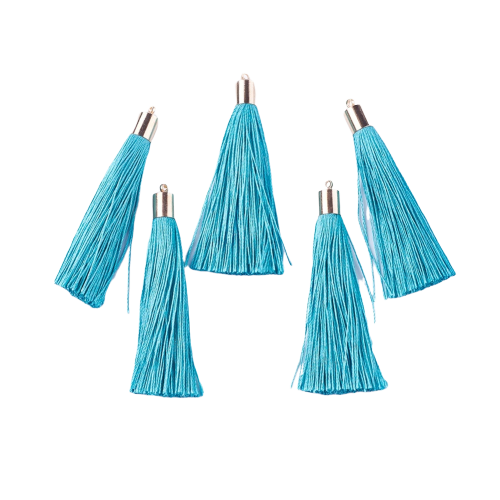 Frędzel ozdobny, chwost, z ozdobną zawieszką (metalowe kółeczko). Wykonany z połyskujących satynowych włókien. Zawieszka idealna do wykonania kolczyka, ozdabiania breloków, zakładek do książek, naszyjników itd. Styl BOHO, bardzo modne w tym sezonie! Staranne wykonanie, piękne kolory.