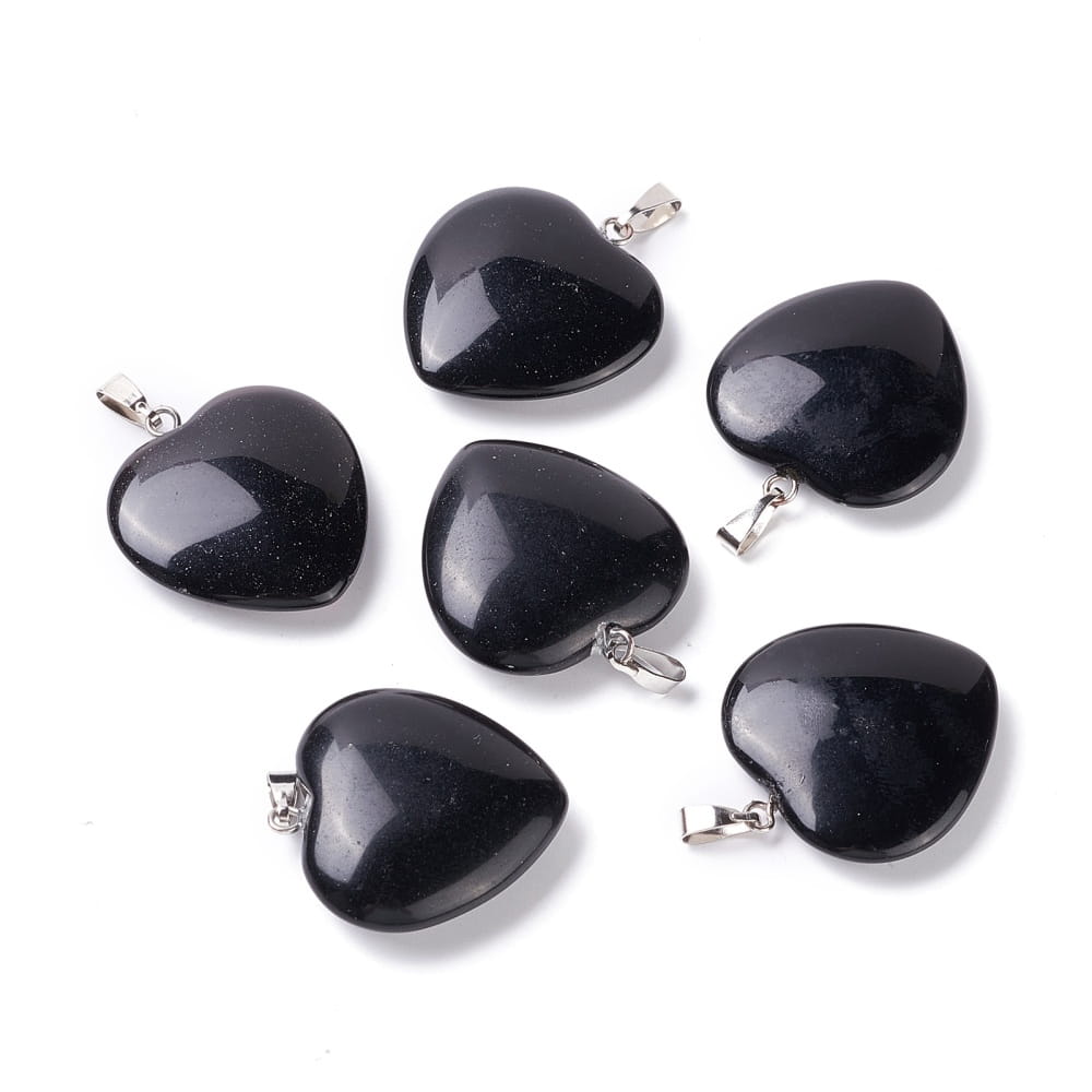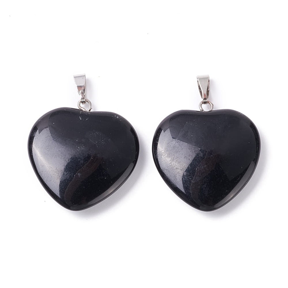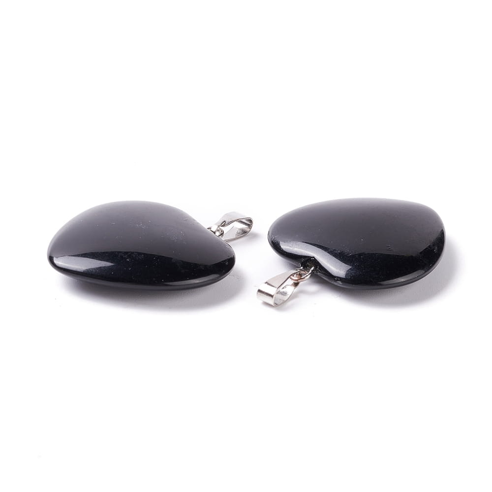 ZKA08 Zawieszka wisior serce serduszko z kamieniem naturalnym obsydianem 25x33mm