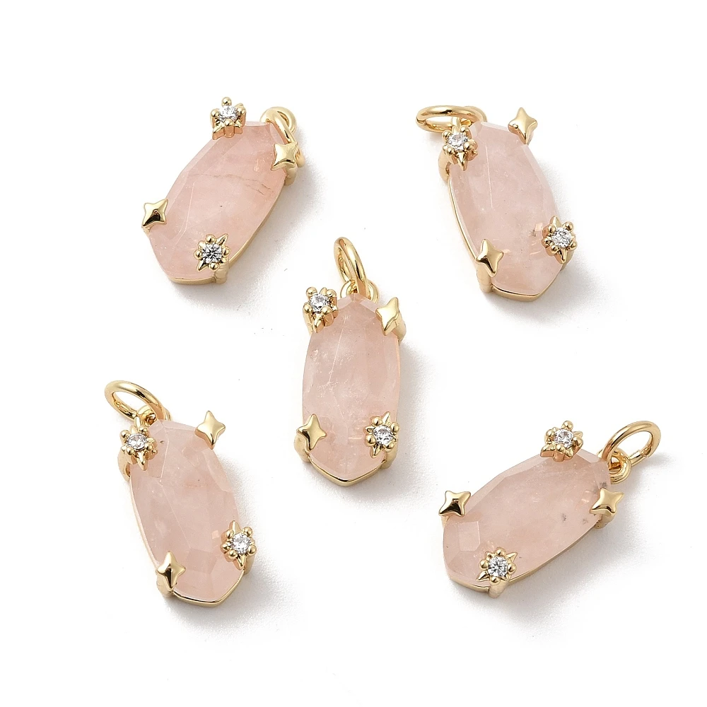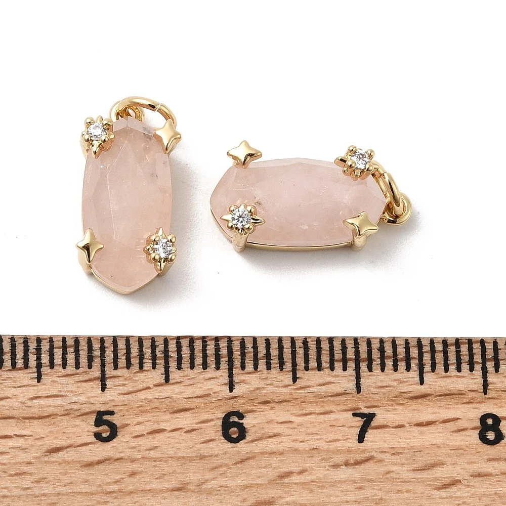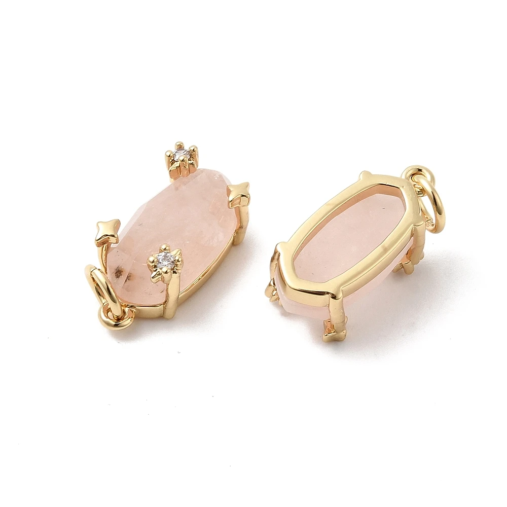 Zawieszka do biżuterii zdobiona naturalnym kamieniem - kwarcem. Kamień szlifowany, niebarwiony. Metalowe elementy zawieszki wykonane z mosiądzu, powlekane 18K. Precyzyjnie wykonana. Posiada jedno oczko montażowe.