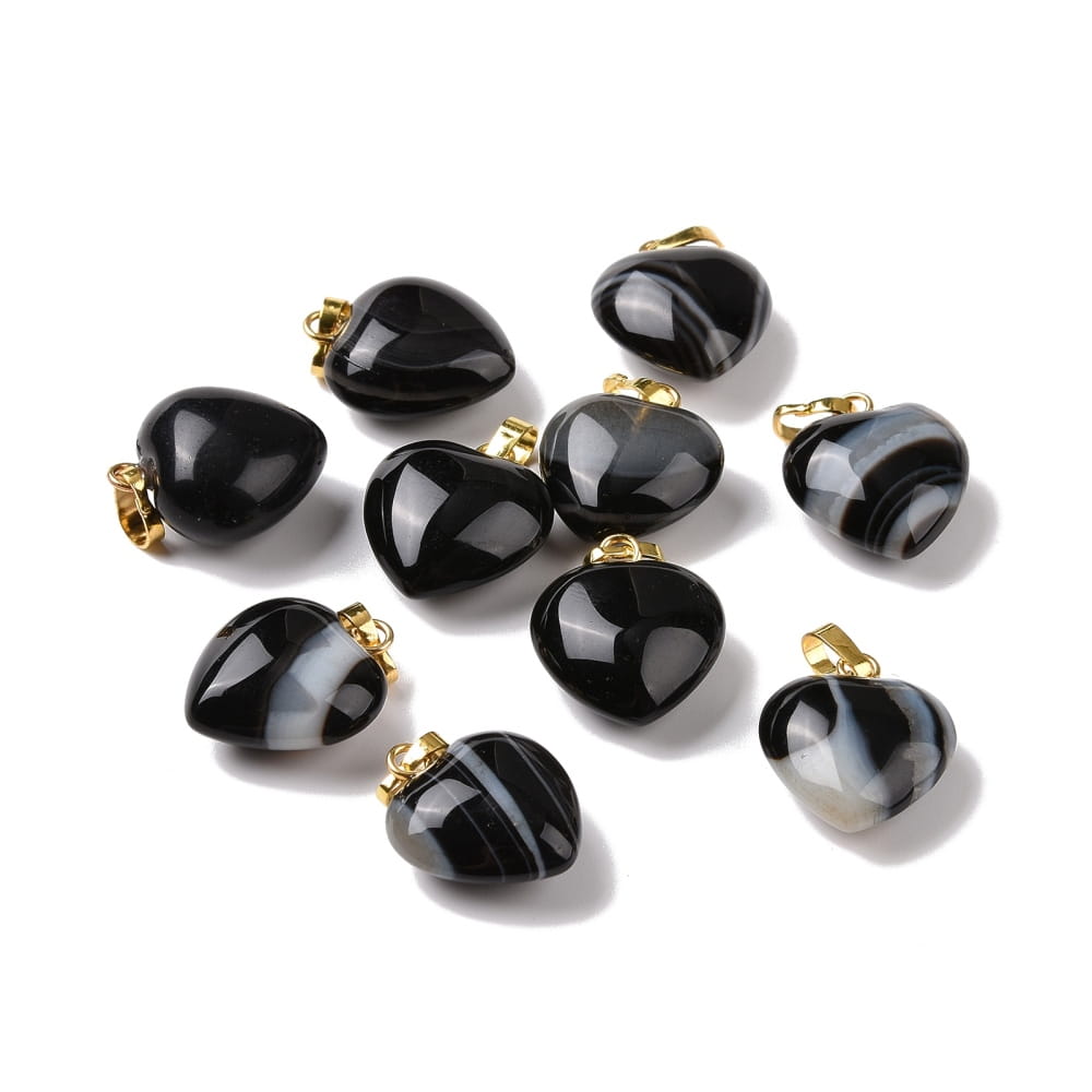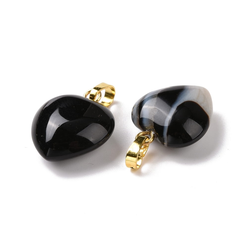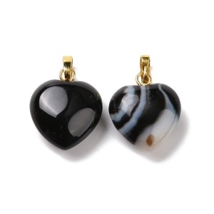 ZKA15 Zawieszka wisior serce serduszko z kamieniem naturalnym agatem czarnym 15x18mm