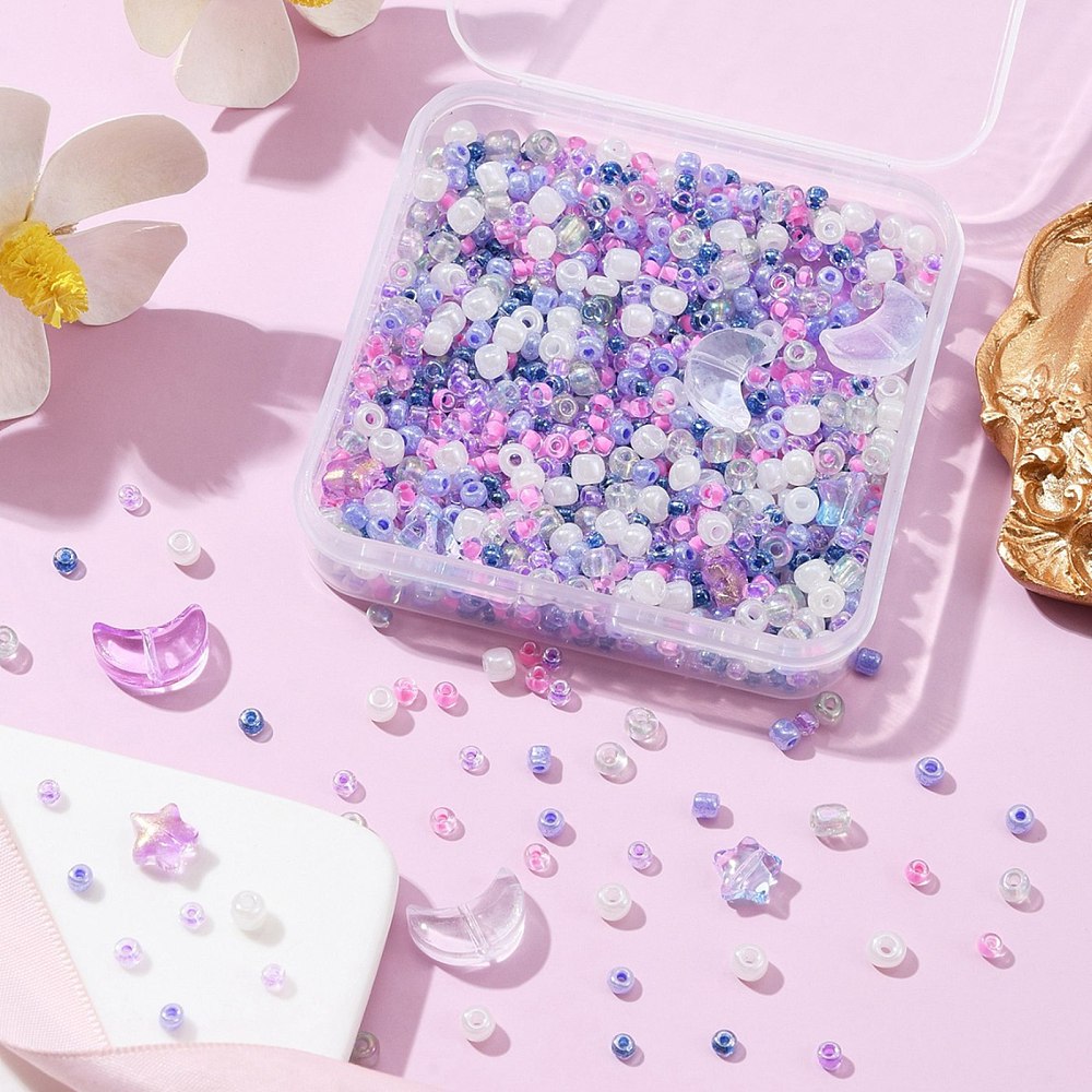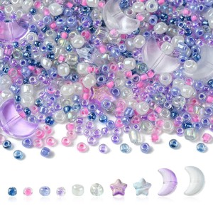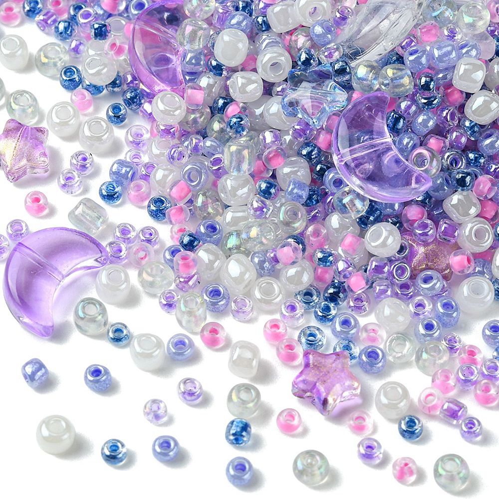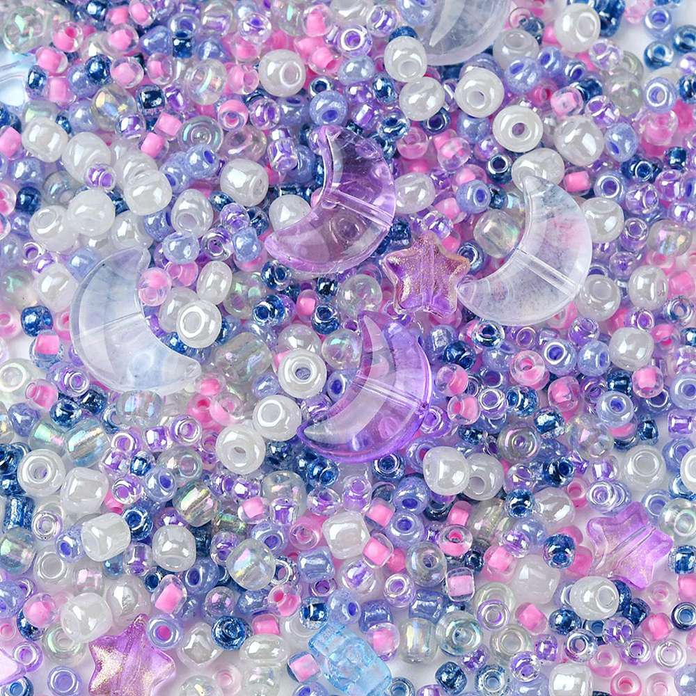 ZRA49 Zestaw koraliki szklane seeds rokail gwiazdki księżyce 45g mix kolorów