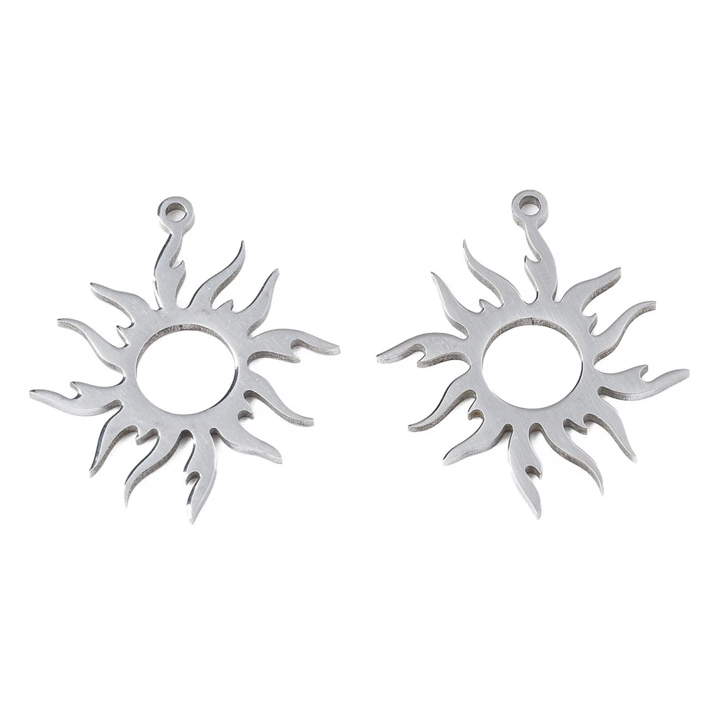 Zawieszka do biżuterii w kształcie słońca, wykonana ze stali nierdzewnej. Posiada jedno oczko montażowe, dwustronna. Do ozdobienia biżuterii oraz innych projektów rękodzielniczych.