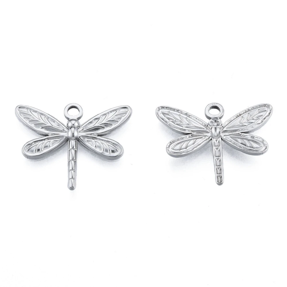 Zawieszka do biżuterii w kształcie ważki, wykonana ze stali nierdzewnej. Posiada jedno oczko montażowe, dwustronna. Do ozdobienia biżuterii oraz innych projektów rękodzielniczych.
