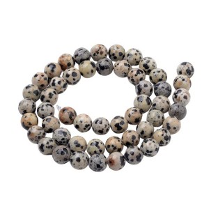 Piękne koraliki wykonane z naturalnego kamienia Jaspis - odmiana dalmatyńczyk. Średnica 6mm. Średnica otworu 1mm. Każdy egzemplarz niepowtarzalny ze względu na naturalne pochodzenie. 10 sztuk.