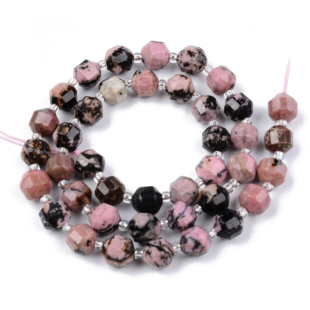 rd07 Rodonit kamień naturalny koraliki kule fasetowany 8mm 5szt