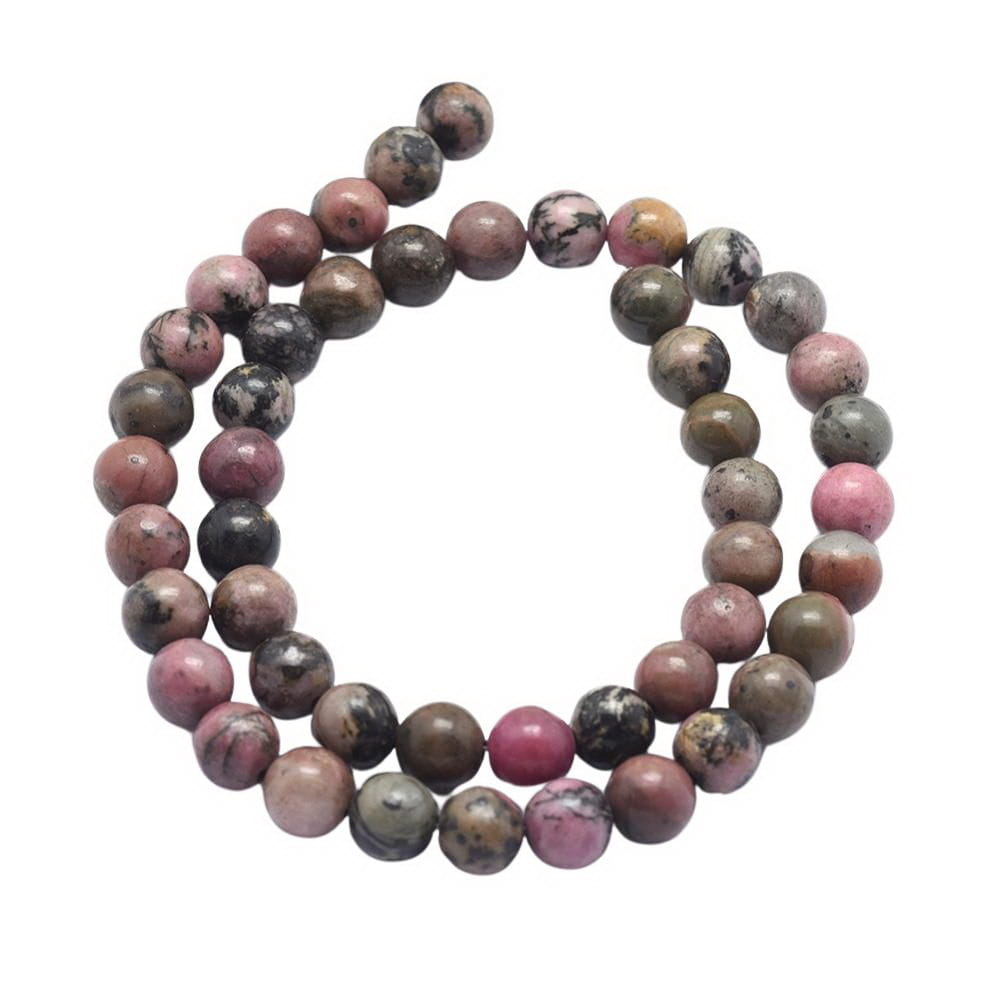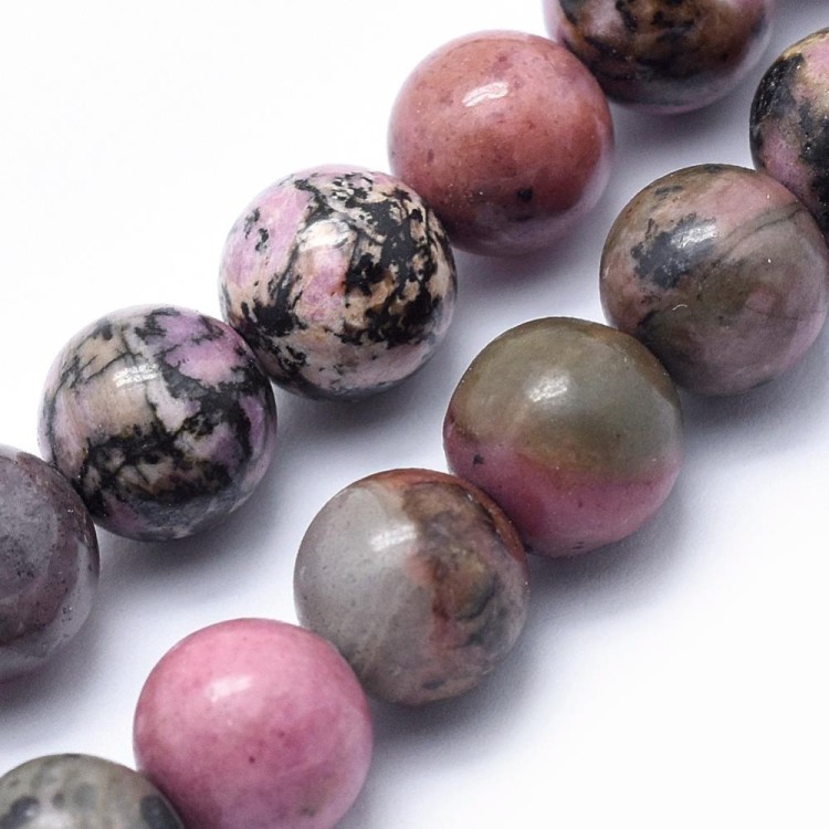 Koraliki wykonane z naturalnego rodonitu. Każdy koralik jest niepowtarzalny, posiada przeróżne wzory i odcienie. Koraliki mogą się również nieznacznie różnić od siebie rozmiarem.