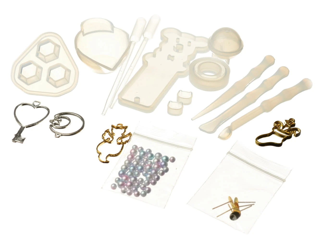 Zestaw do tworzenia biżuterii i ozdób z żywicy UV i dwuskładnikowej.