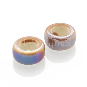 Okrągła przekładka do rzemieni w kształcie oponki. Wykonana z ceramiki. Pokryta opalizującą powłoką. Średnica przekładki około 20mm, średnica otworu wewnętrznego około 10mm. 1 sztuka.