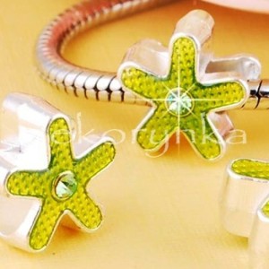 Przekładka modułowa z kolorową emalią i cyrkoniami - pan155 kwiatuszek oliwkowy