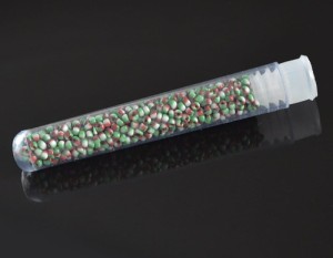 Koraliki szklane rokail, okrągłe w fiolce. Wymiary fiolki 83x12mm. Koraliki mogą się między sobą różnić nieco wymiarami i kształtem. W fiolce jest ponad 6g.