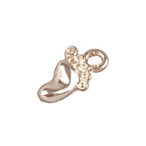 - ewentualnie wstawka lub tzw. charm, wisiorek. Zawieszka w kształcie stopy. Wykonana z metalu antyalergicznego. Stopka na paluszkach ma dziurki, które można własnoręcznie wypełnić cyrkoniami. Posiada jedno oczko montażowe o średnicy wewnętrznej około 2mm. Wymiary zawieszki: 14 x 7 x 2.5mm. Bardzo ładnie wykonana. 1 sztuka w woreczku strunowym.